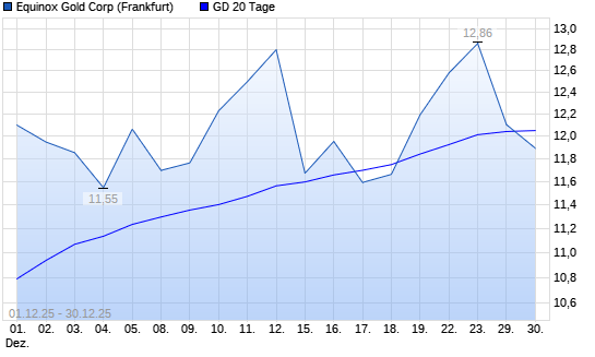 Mit dem Rücksetzer auf 12,10 EUR hat die Equinox Gold-Aktie am 29.12.2025 die 20-Tage-Linie nach unten gekreuzt.