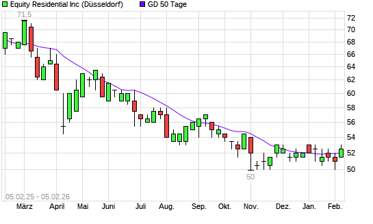 Mit dem Anstieg auf 52,50 EUR hat die Equity Residential-Aktie am 04.02.2026 die 50-Tage-Linie nach oben gekreuzt.