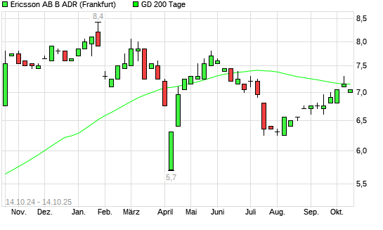 Mit dem Rücksetzer auf 7,05 EUR hat die Ericsson B ADR-Aktie am 13.10.2025 die 200-Tage-Linie nach unten gekreuzt.