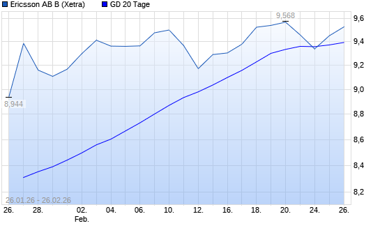 Mit dem Anstieg auf 9,41 EUR hat die Ericsson B-Aktie am 25.02.2026 die 20-Tage-Linie nach oben gekreuzt.