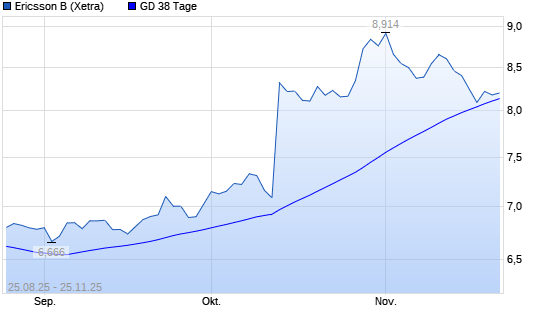 Mit dem Anstieg auf 8,17 EUR hat die Ericsson B-Aktie am 24.11.2025 die 38-Tage-Linie nach oben gekreuzt.