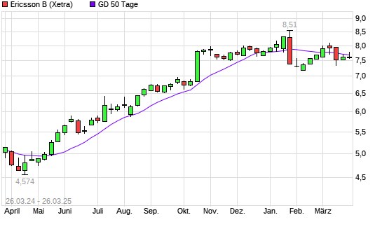 Mit dem Anstieg auf 7,69 EUR hat die Ericsson B-Aktie am 25.03.2025 die 50-Tage-Linie nach oben gekreuzt.