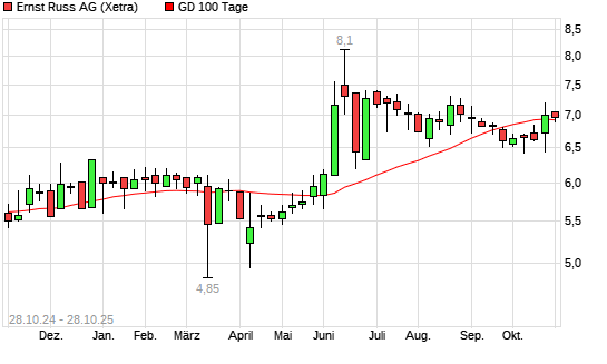 Mit dem Anstieg auf 6,94 EUR hat die Ernst Russ-Aktie am 27.10.2025 die 100-Tage-Linie nach oben gekreuzt.