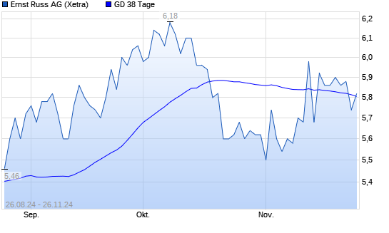 Mit dem Anstieg auf 5,80 EUR hat die Ernst Russ-Aktie am 25.11.2024 die 38-Tage-Linie nach oben gekreuzt.