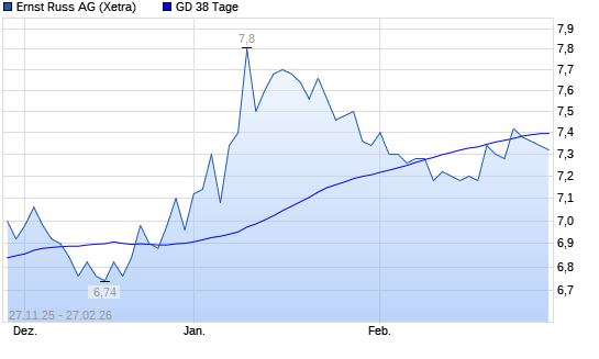 Mit dem Rücksetzer auf 7,34 EUR hat die Ernst Russ-Aktie am 26.02.2026 die 38-Tage-Linie nach unten gekreuzt.