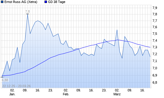 Mit dem Rücksetzer auf 7,16 EUR hat die Ernst Russ-Aktie am 19.03.2026 die 38-Tage-Linie nach unten gekreuzt.