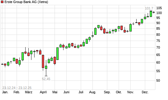 Mit dem Anstieg auf 100,80 EUR hat die Erste Group-Aktie (ISIN AT0000652011) am 22.12.2025 ein neues All-Time-High erreicht und damit den Kurs vom 11.12.2025 eingestellt.Die Erste Group-Aktie ...weiterlesen