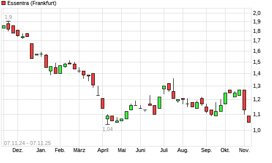 Mit dem Rücksetzer auf 1,05 EUR hat die Essentra-Aktie (ISIN GB00B0744359) am 06.11.2025 ein neues 6-Monats-Tief erreicht und damit den Kurs vom 07.05.2025 eingestellt.
