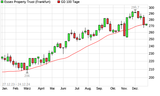 Mit dem Anstieg auf 273,00 EUR hat die Essex Property Trust-Aktie am 23.12.2024 die 100-Tage-Linie nach oben gekreuzt.