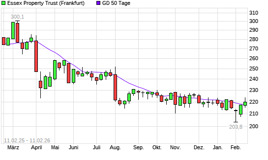 Mit dem Anstieg auf 220,00 EUR hat die Essex Property Trust-Aktie am 10.02.2026 die 50-Tage-Linie nach oben gekreuzt.