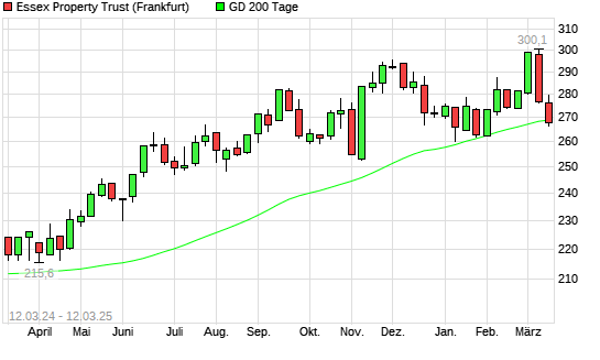 Mit dem Rücksetzer auf 269,70 EUR hat die Essex Property Trust-Aktie am 11.03.2025 die 200-Tage-Linie nach unten gekreuzt.