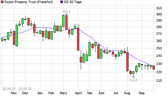 Mit dem Rücksetzer auf 226,50 EUR hat die Essex Property Trust-Aktie am 29.09.2025 die 50-Tage-Linie nach unten gekreuzt.