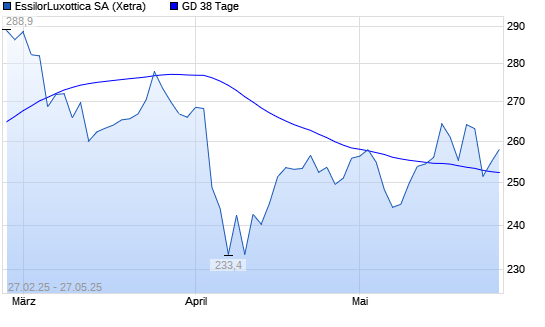 Mit dem Anstieg auf 255,00 EUR hat die EssilorLuxottica-Aktie am 26.05.2025 die 38-Tage-Linie nach oben gekreuzt.