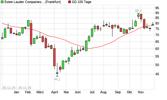 Mit dem Anstieg auf 80,80 EUR hat die Estee Lauder Companies-Aktie am 24.11.2025 die 100-Tage-Linie nach oben gekreuzt.