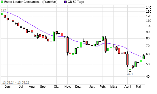 Mit dem Anstieg auf 60,20 EUR hat die Estee Lauder Companies-Aktie am 12.05.2025 die 50-Tage-Linie nach oben gekreuzt.