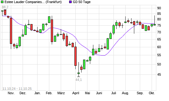 Mit dem Rücksetzer auf 76,00 EUR hat die Estee Lauder Companies-Aktie am 10.10.2025 die 50-Tage-Linie nach unten gekreuzt.