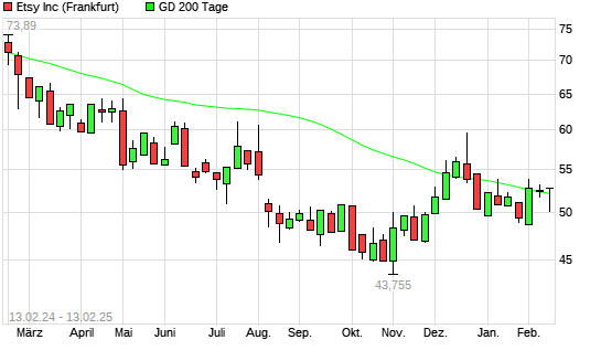 Mit dem Rücksetzer auf 51,23 EUR hat die Etsy-Aktie am 12.02.2025 die 200-Tage-Linie nach unten gekreuzt.