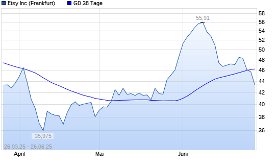 Mit dem Rücksetzer auf 45,71 EUR hat die Etsy-Aktie am 25.06.2025 die 38-Tage-Linie nach unten gekreuzt.