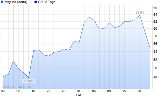 Mit dem Rücksetzer auf 55,20 EUR hat die Etsy-Aktie am 29.10.2025 die 38-Tage-Linie nach unten gekreuzt.