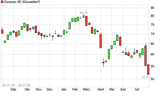 Mit dem Rücksetzer auf 52,05 EUR hat die Eurazeo-Aktie (ISIN FR0000121121) am 29.07.2025 ein neues 12-Monats-Tief erreicht und damit den Kurs vom 28.07.2025 eingestellt.