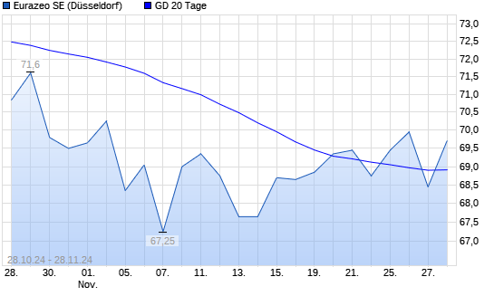 Mit dem Anstieg auf 69,55 EUR hat die Eurazeo-Aktie am 27.11.2024 die 20-Tage-Linie nach oben gekreuzt.