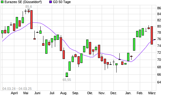 Mit dem Anstieg auf 76,10 EUR hat die Eurazeo-Aktie am 03.03.2025 die 50-Tage-Linie nach oben gekreuzt.