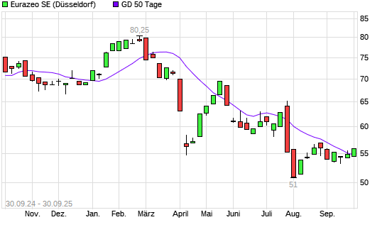 Mit dem Anstieg auf 56,05 EUR hat die Eurazeo-Aktie am 29.09.2025 die 50-Tage-Linie nach oben gekreuzt.