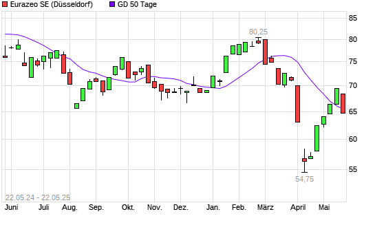Mit dem Rücksetzer auf 64,70 EUR hat die Eurazeo-Aktie am 21.05.2025 die 50-Tage-Linie nach unten gekreuzt.
