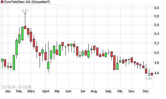 Mit dem Rücksetzer auf 4,54 EUR hat die EuroTeleSites AG-Aktie (ISIN AT000000ETS9) am 16.12.2025 ein neues 12-Monats-Tief erreicht und damit den Kurs vom 02.12.2025 eingestellt.