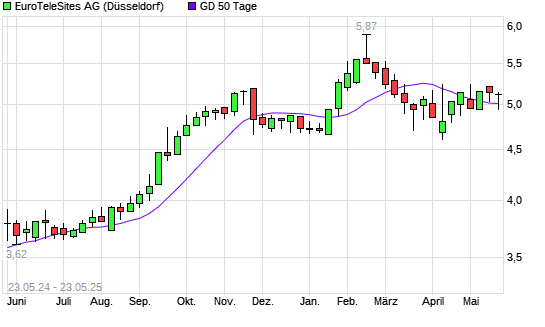 Mit dem Anstieg auf 4,99 EUR hat die EuroTeleSites AG-Aktie am 22.05.2025 die 50-Tage-Linie nach oben gekreuzt.