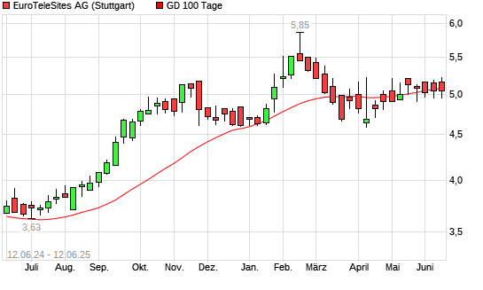 Mit dem Rücksetzer auf 5,02 EUR hat die EuroTeleSites AG-Aktie am 11.06.2025 die 100-Tage-Linie nach unten gekreuzt.