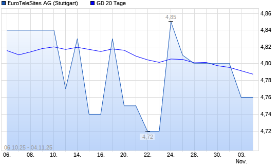 Mit dem Rücksetzer auf 4,76 EUR hat die EuroTeleSites AG-Aktie am 03.11.2025 die 20-Tage-Linie nach unten gekreuzt.