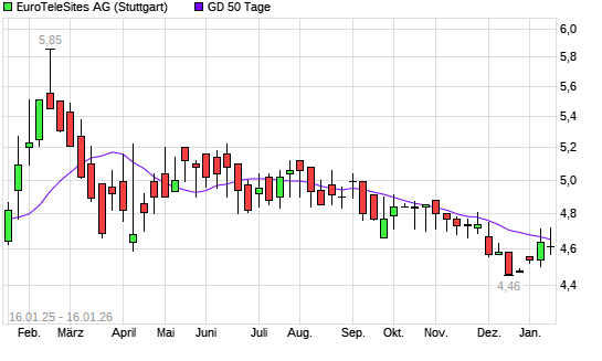 Mit dem Rücksetzer auf 4,59 EUR hat die EuroTeleSites AG-Aktie am 15.01.2026 die 50-Tage-Linie nach unten gekreuzt.
