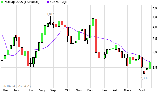 Mit dem Anstieg auf 2,68 EUR hat die Euroapi-Aktie am 25.04.2025 die 50-Tage-Linie nach oben gekreuzt.