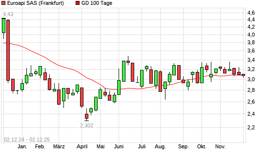 Mit dem Rücksetzer auf 3,04 EUR hat die Euroapi-Aktie am 01.12.2025 die 100-Tage-Linie nach unten gekreuzt.