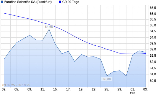 Mit dem Anstieg auf 62,90 EUR hat die Eurofins Scientific-Aktie am 02.10.2025 die 20-Tage-Linie nach oben gekreuzt.