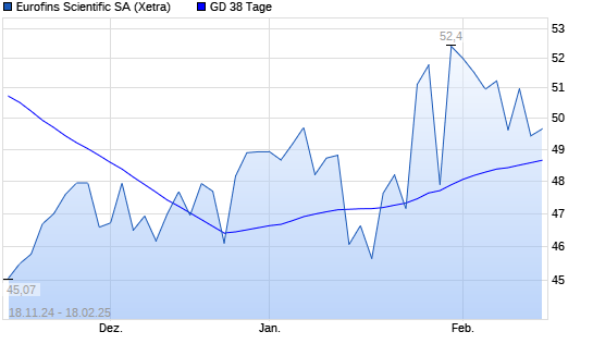 Mit dem Rücksetzer auf 48,94 EUR hat die Eurofins Scientific-Aktie am 17.02.2025 die 38-Tage-Linie nach unten gekreuzt.