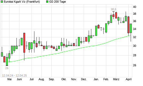 Mit dem Anstieg auf 35,30 EUR hat die Eurokai-Aktie am 11.04.2025 die 200-Tage-Linie nach oben gekreuzt.