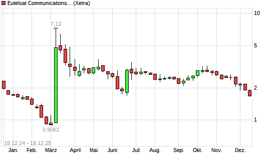 Mit dem Rücksetzer auf 1,84 EUR hat die Eutelsat Communications-Aktie (ISIN FR0010221234) am 17.12.2025 ein neues 6-Monats-Tief erreicht und damit den Kurs vom 16.12.2025 eingestellt.