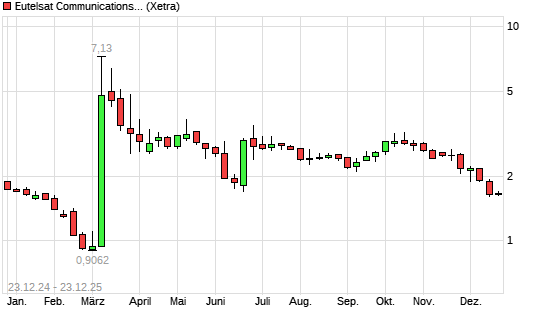 Mit dem Rücksetzer auf 1,64 EUR hat die Eutelsat Communications-Aktie (ISIN FR0010221234) am 22.12.2025 ein neues 6-Monats-Tief erreicht und damit den Kurs vom 19.12.2025 eingestellt.
