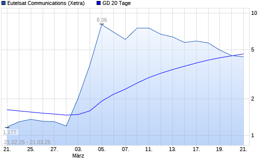 Mit dem Rücksetzer auf 4,28 EUR hat die Eutelsat Communications-Aktie am 20.03.2025 die 20-Tage-Linie nach unten gekreuzt.
