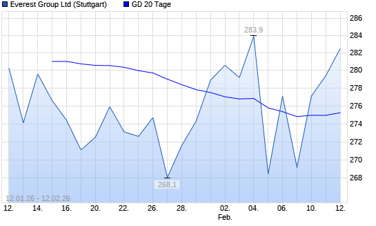 Mit dem Anstieg auf 276,10 EUR hat die Everest Re-Aktie am 11.02.2026 die 20-Tage-Linie nach oben gekreuzt.Die Everest Re-Aktie befindet sich seit dem 10.10.2025 im ...weiterlesen