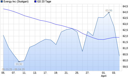 Mit dem Anstieg auf 62,06 EUR hat die Evergy-Aktie am 04.04.2025 die 20-Tage-Linie nach oben gekreuzt.