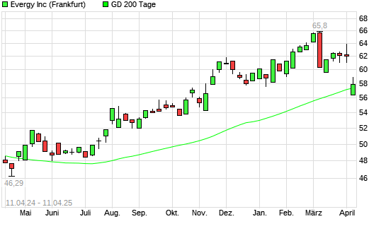 Mit dem Anstieg auf 58,90 EUR hat die Evergy-Aktie am 10.04.2025 die 200-Tage-Linie nach oben gekreuzt.