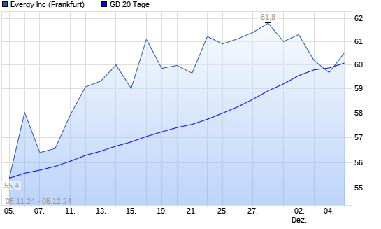 Mit dem Rücksetzer auf 59,68 EUR hat die Evergy-Aktie am 04.12.2024 die 20-Tage-Linie nach unten gekreuzt.