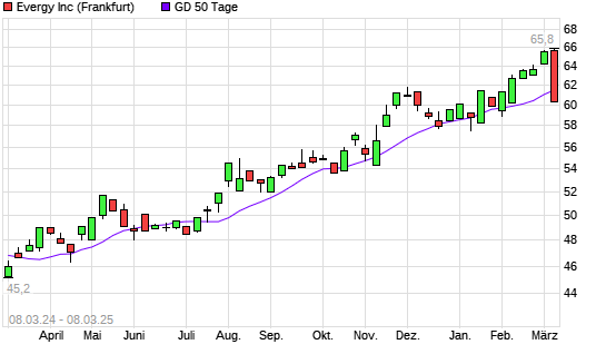 Mit dem Rücksetzer auf 60,30 EUR hat die Evergy-Aktie am 07.03.2025 die 50-Tage-Linie nach unten gekreuzt.
