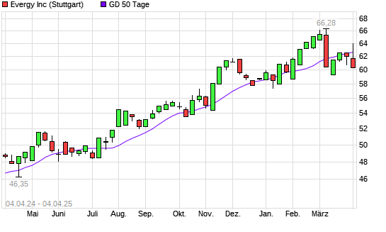 Mit dem Rücksetzer auf 61,12 EUR hat die Evergy-Aktie am 03.04.2025 die 50-Tage-Linie nach unten gekreuzt.