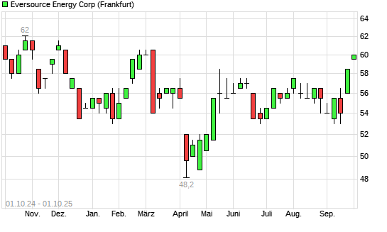 Mit dem Anstieg auf 60,00 EUR hat die Eversource Energy-Aktie (ISIN US30040W1080) am 30.09.2025 ein neues 6-Monats-Hoch erreicht und damit den Kurs vom 29.09.2025 eingestellt.