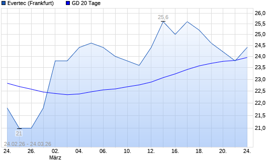Mit dem Rücksetzer auf 23,80 EUR hat die Evertec-Aktie am 23.03.2026 die 20-Tage-Linie nach unten gekreuzt.