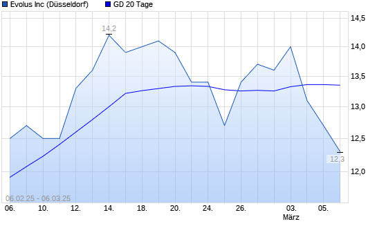 Mit dem Rücksetzer auf 13,40 EUR hat die Evolus-Aktie am 05.03.2025 die 20-Tage-Linie nach unten gekreuzt.